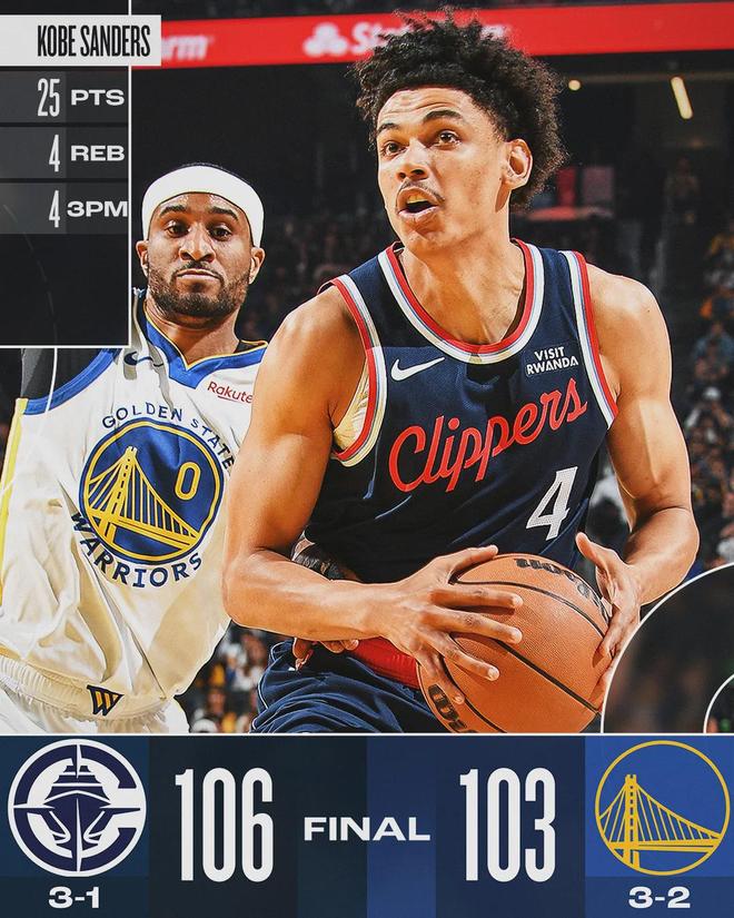庫里出戰(zhàn)29分30秒,投籃16中7,三分8中4,罰球2中2,得到20分4籃板5助攻1蓋帽1失誤2犯規(guī)。有個新秀搶走比爾和庫里的風(fēng)頭,他就是快船50號秀科比-桑德斯:投籃15中8,三分9中4,罰球6中5,狂砍25分4籃板2助攻1搶斷。