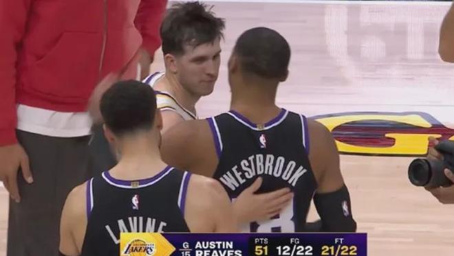 里夫斯單場51分準三雙,破了個人NBA生涯得分紀錄,這個落選秀真的太牛逼了,是NBA自1954年的尼爾·約翰斯頓以來首位拿到50分兩雙的落選秀,也是NBA史上落選秀的第4次單場50分。