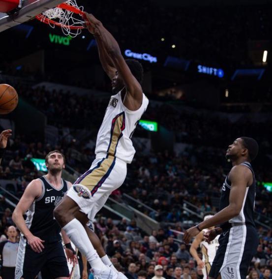 這一個比賽日,馬刺坐鎮主場弗羅斯特銀行中心,迎戰來訪的新奧爾良鵜鶘,本場比賽胖虎錫安威廉姆斯展現出了狀元郎的統治力,率領鵜鶘在圣安東尼奧爆冷,以104-95復仇馬刺。