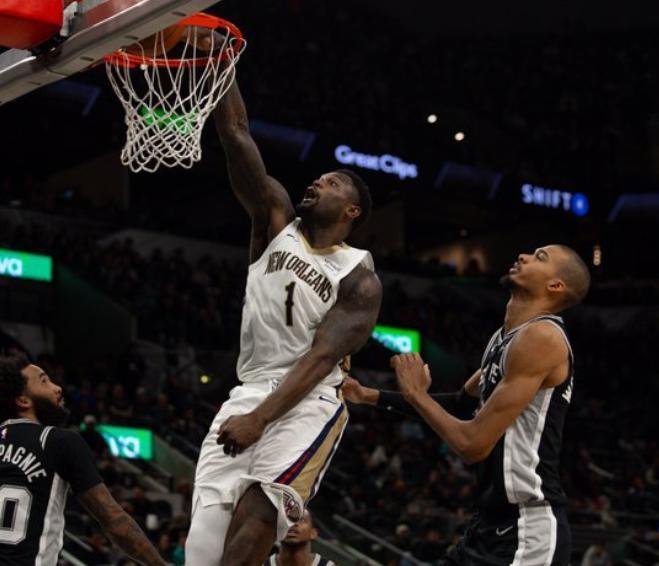 錫安兩雙力挽狂瀾,文班亞馬空砍16+16+4封蓋,馬刺不敵西部倒一