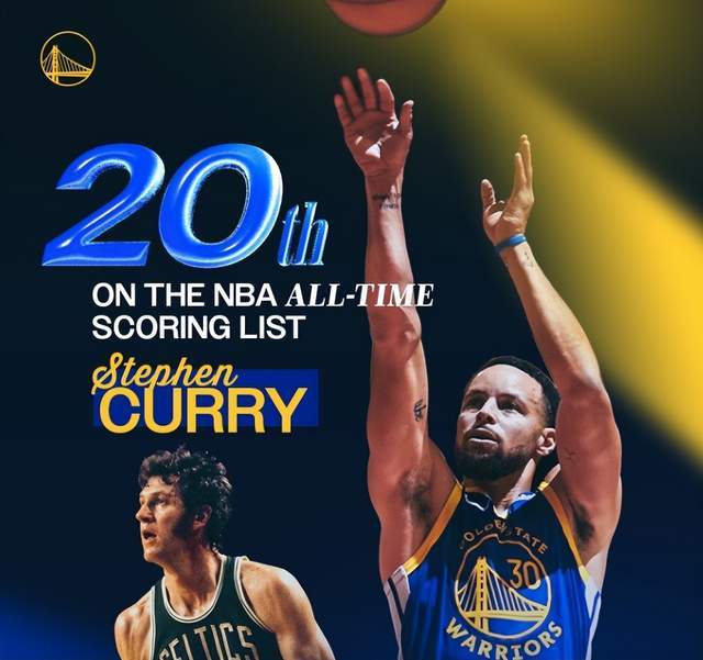喜迎里程碑!庫里追平皮爾斯并列歷史得分榜第19位